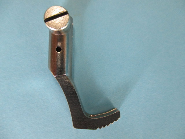 アドラー厚物用の総合送りミシンに使用します、幅広中押え、中割れ「2B-1」です。 ●押えの底面の全体の幅は約5.8mmです。 ●総合送りミシンの外押えはサイズが色々ございますのでお間違えなく。