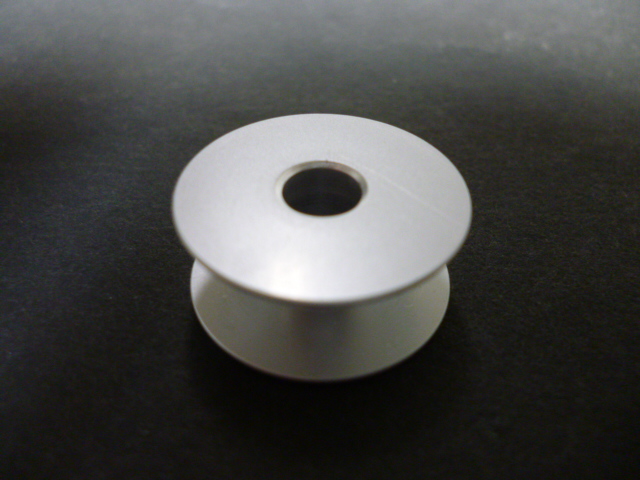 工業用の2本針用(小釜)水平釜ミシンに使用しますアルミ製のボビンです。 ●代表的な使用ミシンとして三菱LT2-220/LT2-250/LX2-630があります。 ●小さい丸穴が開いていません。 ●直径22.0mm 厚み9.6mm 中心穴の径6.0mm