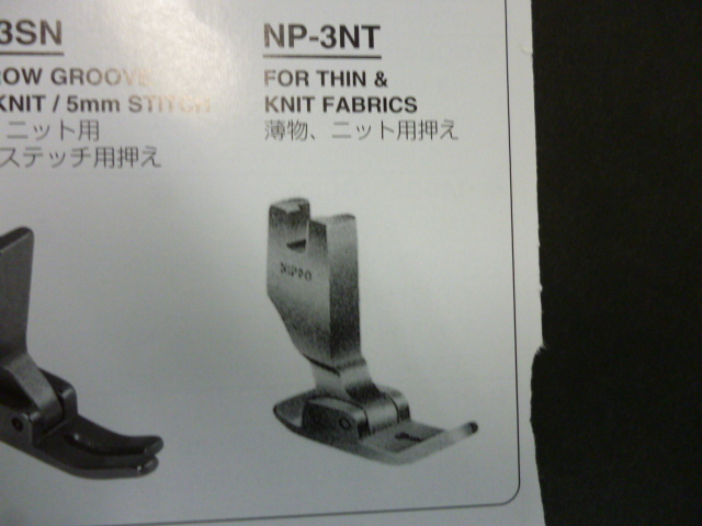 NIPPO NP-3NT ニット・薄物用押えです。 ■この商品は中古品になります。 ■写真と同一の商品をお送りするかどうかはわかりませが、比較的きれいな物をお送りします。 ■工業用本縫いミシンで使用します(家庭用ミシンでは使用できません)。