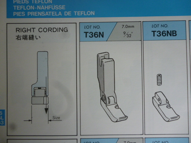 SUISEIの右端縫いテフロン押えT36Nです。 ■この商品は新品ではありますが長期在庫の商品に付、汚れ・キズ・サビ等ある場合もございますのでご了承ください。 ■写真と同一の商品をお送りするかどうかはわかりません。 ■工業用本縫いミシンで使用します(家庭用ミシンでは使用できません)。