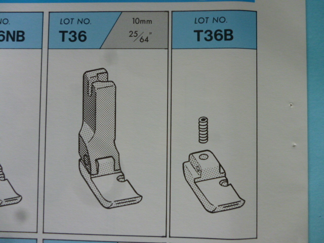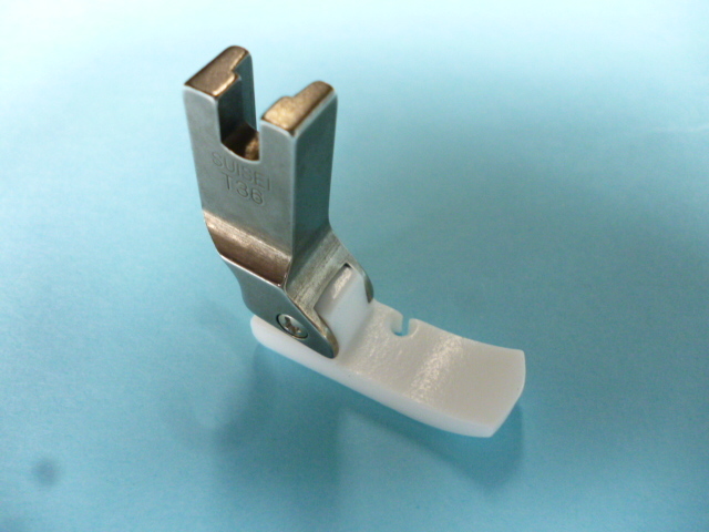 SUISEIの右端縫いテフロン押えT36です。 ■この商品は新品ではありますが長期在庫の商品に付、汚れ・キズ・サビ等ある場合もございますのでご了承ください。 ■写真と同一の商品をお送りするかどうかはわかりません。 ■工業用本縫いミシンで使用します(家庭用ミシンでは使用できません)。