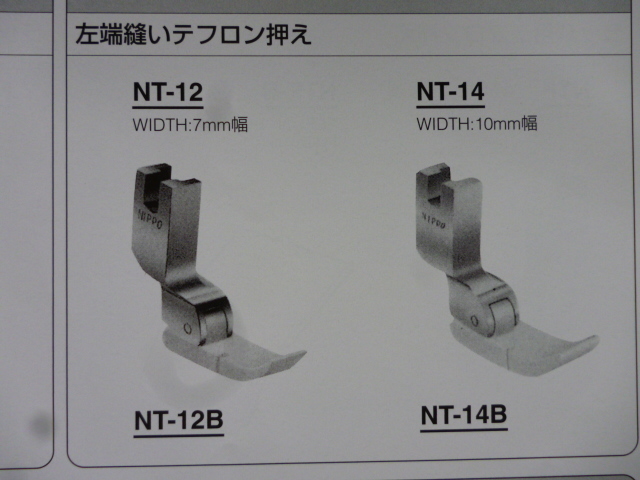 NIPPOの左端縫いテフロン押えNT-12です。 ■この商品は新品ではありますが長期在庫の商品に付、汚れ・キズ・サビ等ある場合もございますのでご了承ください。 ■写真と同一の商品をお送りするかどうかはわかりません。 ■工業用本縫いミシンで使用します(家庭用ミシンでは使用できません)。