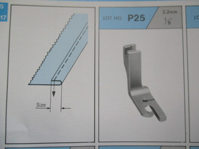 スイセイの 「二巻押え」出来上がり3.2mmで、記号はP25です。 ■この商品は中古品になります(一部長期在庫の新品も含まれています)。 ■写真と同一の商品をお送りするかどうかはわかりませんが、比較的きれいな物をお送りします。 ■工業用本縫いミシンで使用します(家庭用ミシンでは使用できません)。