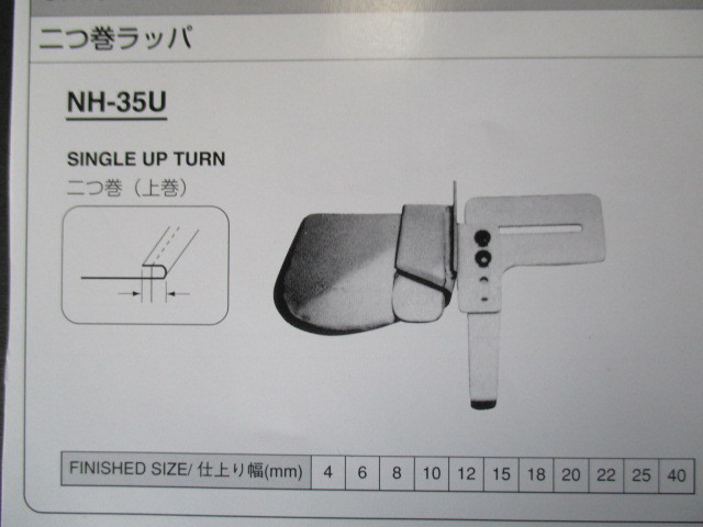 NIPPO 上巻二ツ巻ラッパ 「NH-35」 「NH-35U」です。 ■この商品は中古品になります。 ■写真と同一の商品をお送りするかどうかはわかりませが、比較的きれいな物をお送りします。 ■サイズをお選びください。 ■工業用本縫いミシンで使用します(家庭用ミシンでは使用できません)。