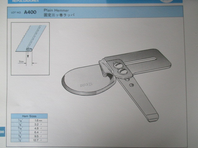 スイセイ 固定三巻ラッパ 「A400」 です。 ■この商品は中古品になります。 ■写真と同一の商品をお送りするかどうかはわかりませが、比較的きれいな物をお送りします。 ■サイズをお選びください。 ■このラッパは専用の押え金でなくても使用できますが、最後の画像にアップされています押え金を使用しますと縫い条件が良くなります。 ■工業用本縫いミシンで使用します(家庭用ミシンでは使用できません)。