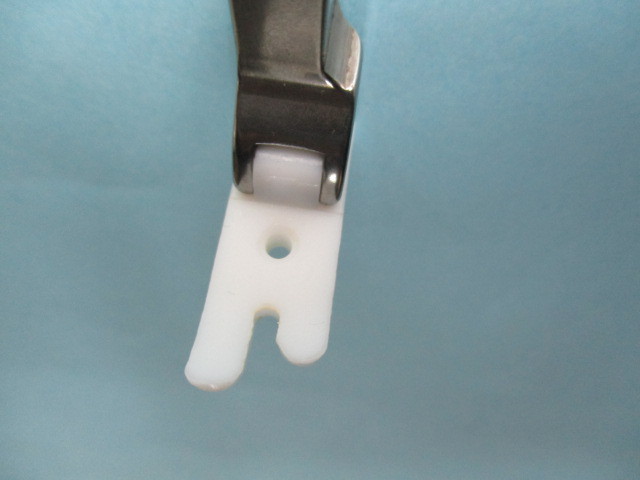 滑りの悪いレザー・皮等に特に適しています、普通アパレル商品の縫いに使用される場合もあります(ラッパ専用の押えです削って使用できます)。 ●メーカーはニッポーでNT-4の記号です。 ●底のテフロンの幅は約11mmです。 ●ソリ部分の交換用テフロンのみもあります。 ●生地と接する部分がフッ素樹脂を使用していますので摩擦抵抗が軽減され縫いずれ防止に有効です。 ●工業用の本縫いミシンで使用します。 ●家庭用ミシンには使用できません。