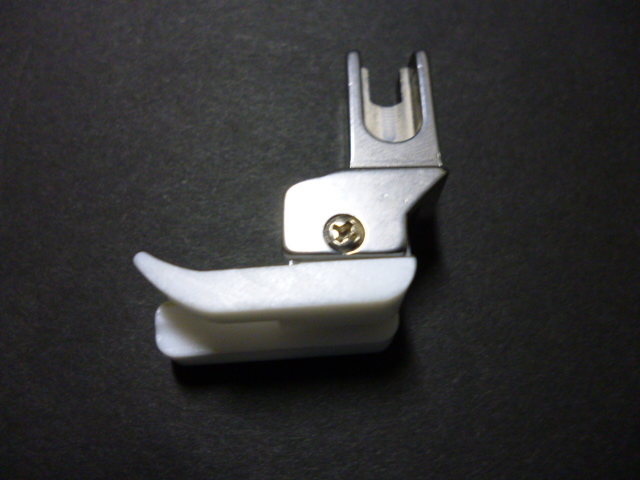 フッ素樹脂の左段付き押えです(ニッポーNLT)、1本針の工業用(職業用)ミシンで使用します。(家庭用ミシンでは使用できません)