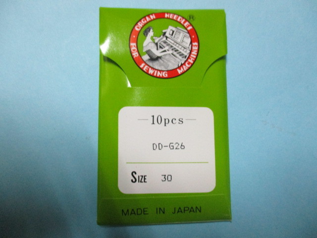 工業用の厚物用ミシンに使用するミシン針です。 ■DD-G26 30番です。 ■針の袋の色は番手によりベージュ色・グリーン色になります。 ■30番のみ在庫いたしております、他の番手は取り寄せになります。