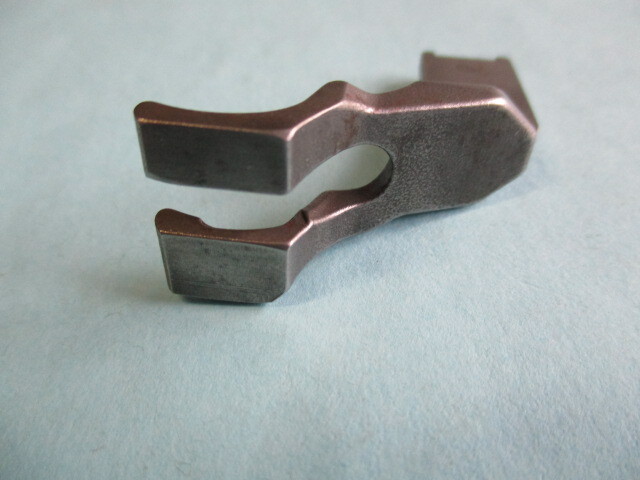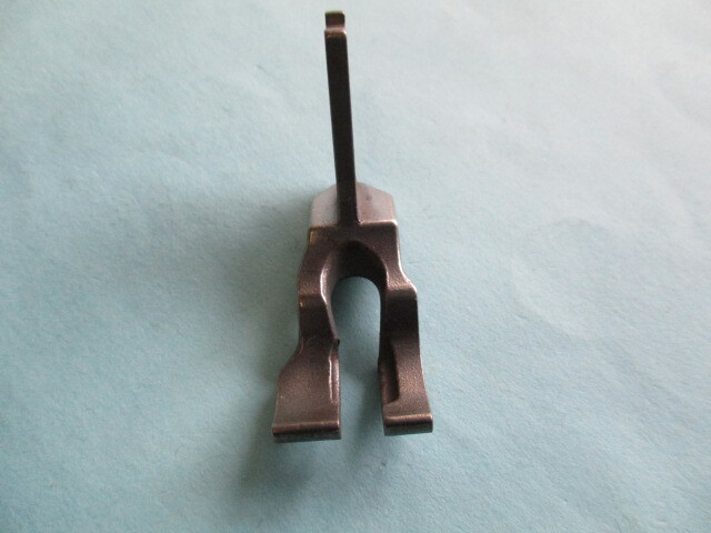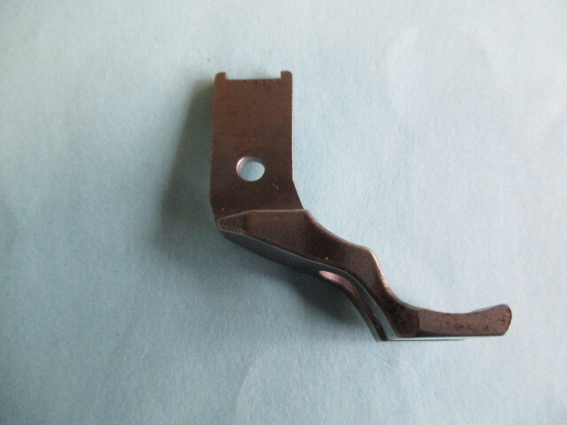 厚物用の総合送りミシンに使用します、バックカット外押え金です。 ■押えの底面のの全体幅は約18.8mmで底面の空間の幅は約5mmです。 ■この商品は新品ですが最終仕上げのメッキは行っておりません、又、若干のバリがあります。場合によってはヤスリ等でバリを取っていただく必要があります。 ■総合送りミシンの外押えはサイズが色々ございますのでお間違えなく。 ●若干バリがございます。