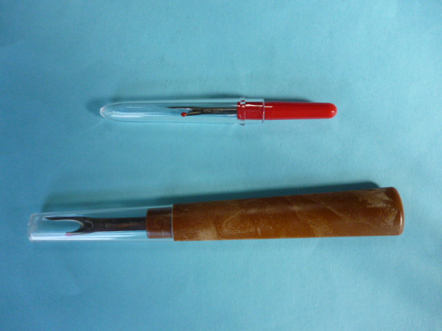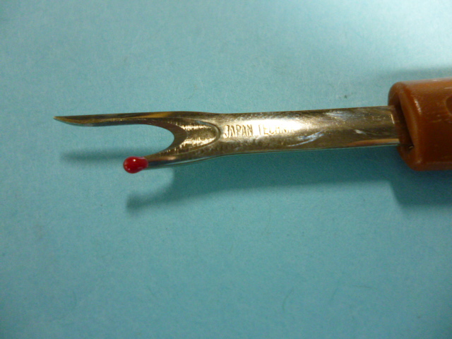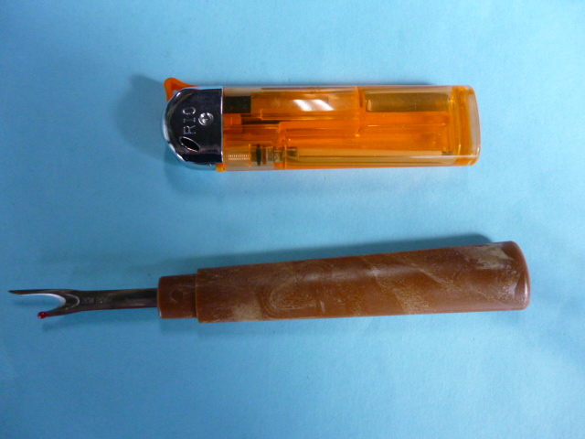 縫った糸をほどいたり、穴かがりの穴を開けたり色々な使用方法があります。 ●全長が約130mmあります、(透明のキャップを外した全長)。ライターの大きさと比較してください。