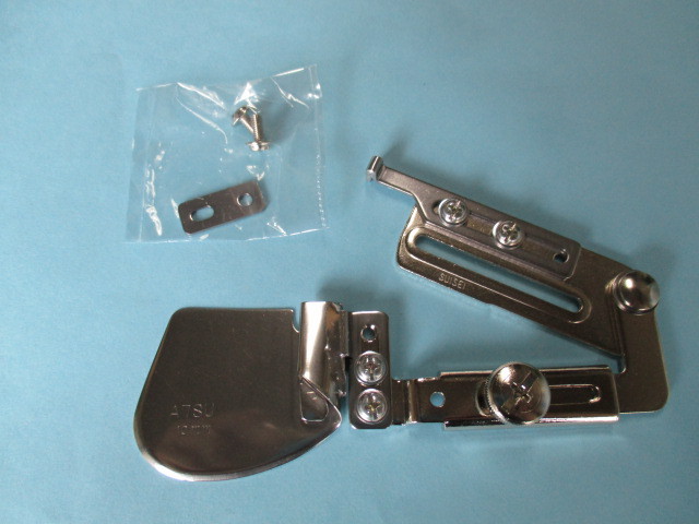 工業用の本縫いミシンで使用します上巻きラッパです。 ■家庭用ミシン及び工業用ミシンでも上下送りミシン・針送りミシン・総合送りミシンには使用できません。 ■A7SU上巻き二つ折りラッパはステッチ幅が左右に異なるため推進押え金「品番SA」が特にはございません。 ■サイズの変更・返品はお受けできません(一度装着されますと中古品になってしまいます)慎重にお選びください。