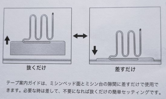 スイセイのバイアステープ案内ガイドです。 ■ミシンベッドと手前のテーブルの隙間に差し込んで使用します。 ■差し込み部分がなめらかなカーブになっていて、隙間に差し込んでもテープガイドが動きません。 ■ガイドを取り付ける位置は決まっていません、ラッパの種類により位置を変えて使用できます。 ■TG-40は最大テープサイズが40mm、TG-60は最大テープサイズが60mmですお選びください。