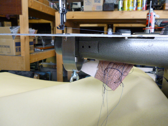■使用方法はミシンの先端より差し込み、下側の大きなダイヤルネジで固定します。